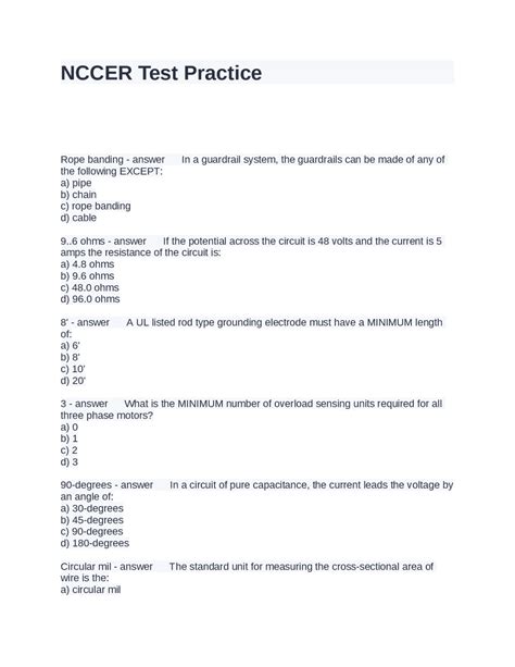Read Online nccer electrical practice test Doc online is a convenient and frugal way to read nccer electrical practice test you love right from the comfort of your own home. Yes, there sites where you can get Doc "for free" but the ones listed below are clean from viruses and completely legal to use.