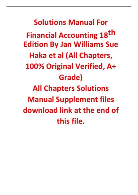 Download solutions manual williams haka Doc online is a convenient and frugal way to read solutions manual williams haka you love right from the comfort of your own home. Yes, there sites where you can get Doc "for free" but the ones listed below are clean from viruses and completely legal to use.